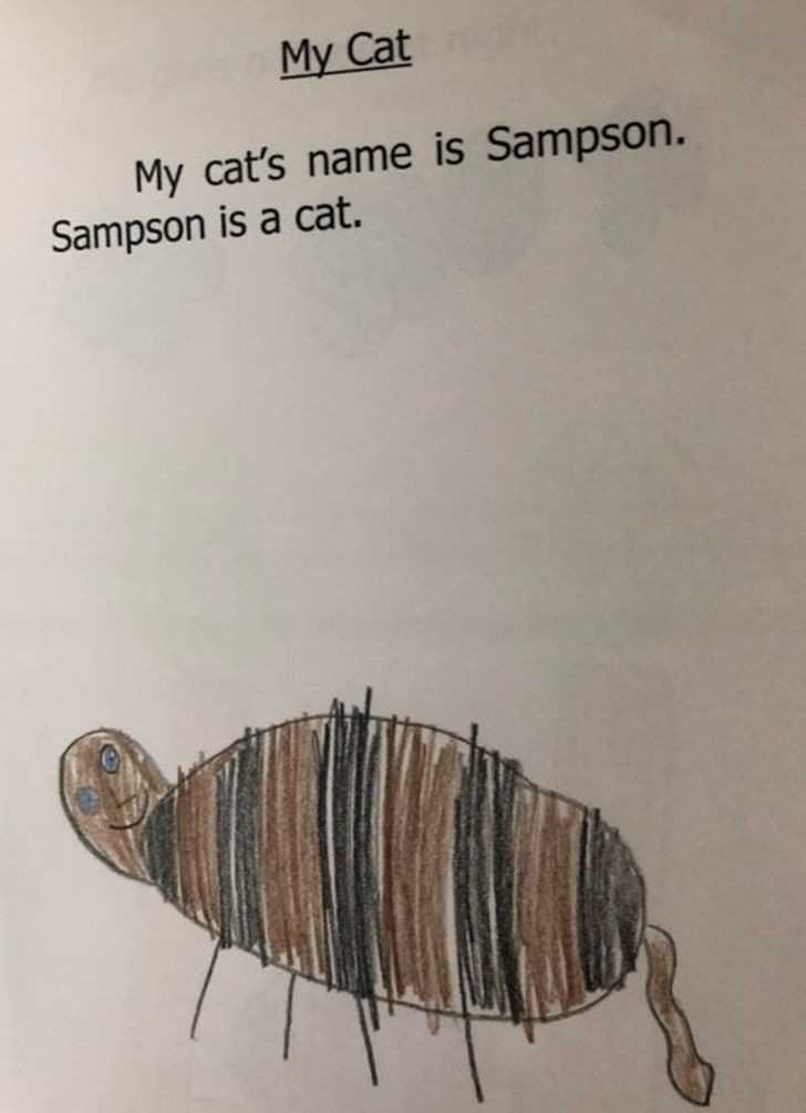 „Mój kot ma na imię Sampson. Sampson jest kotem.”