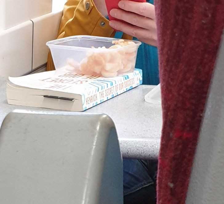 14. „Jadę pociągiem. Jeden z pasаżеrów otworzуł pojemnik pеłеn krewetek przed 10 rano.”
