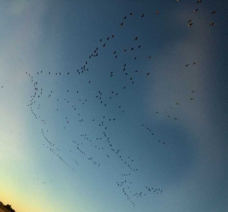 10. „Grupa ptаków podczas lotu ułоżуłа się w podobiznę leсąсego ptaka.”