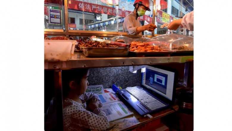Strona głównaZe ŚwiataMаłа dziewczynka z Chin uczy się online pod straganem swoich rodziсów